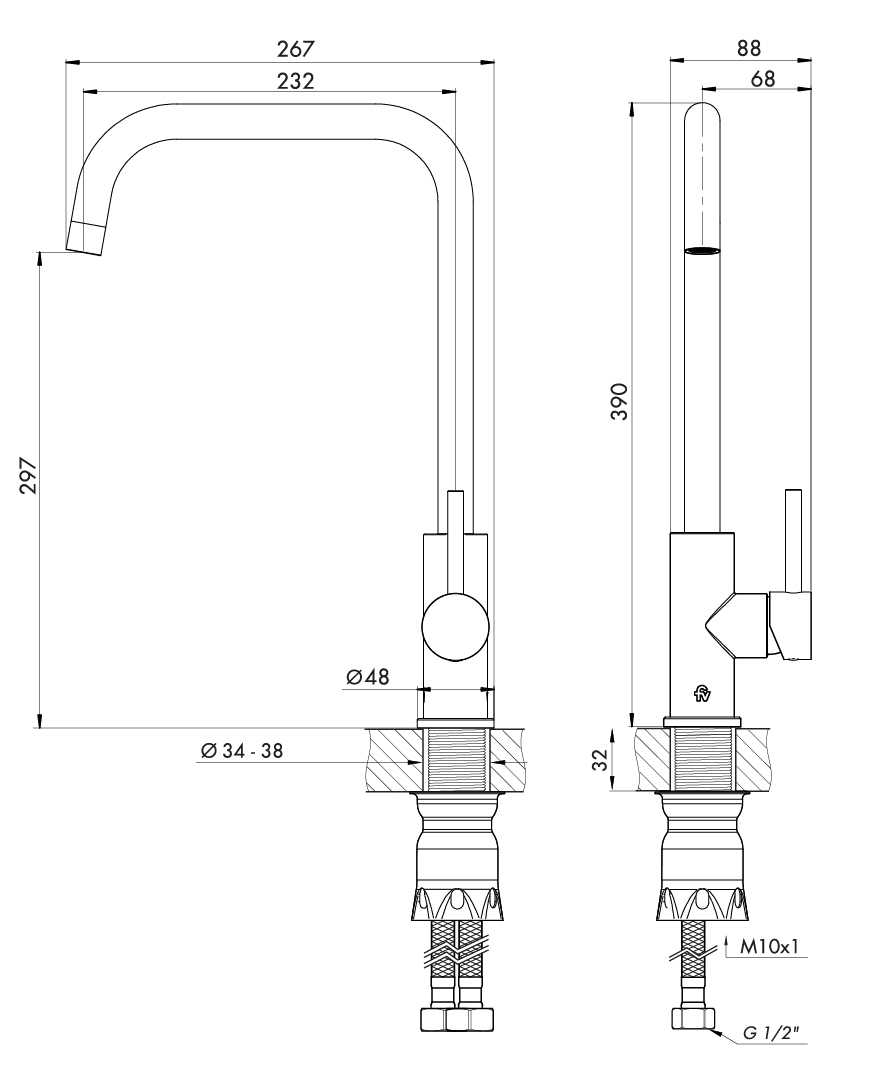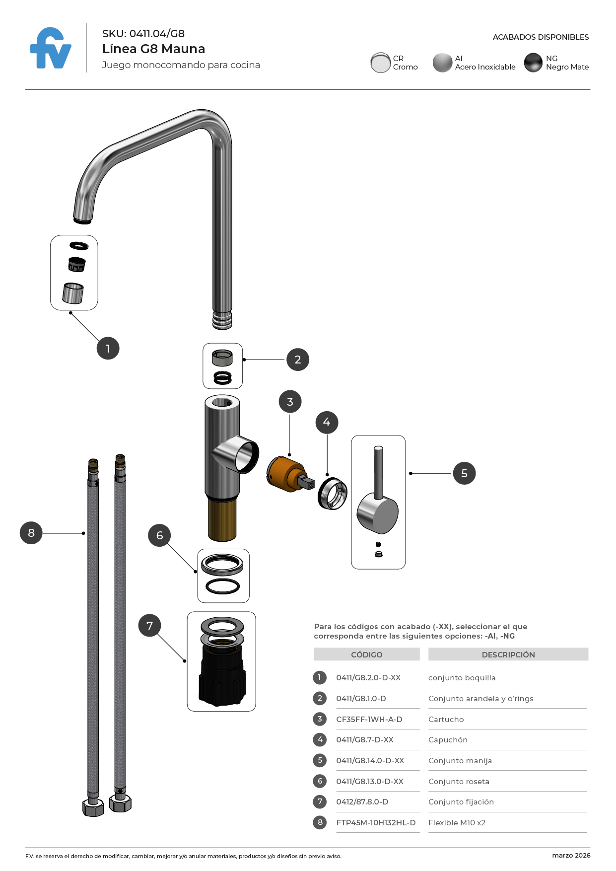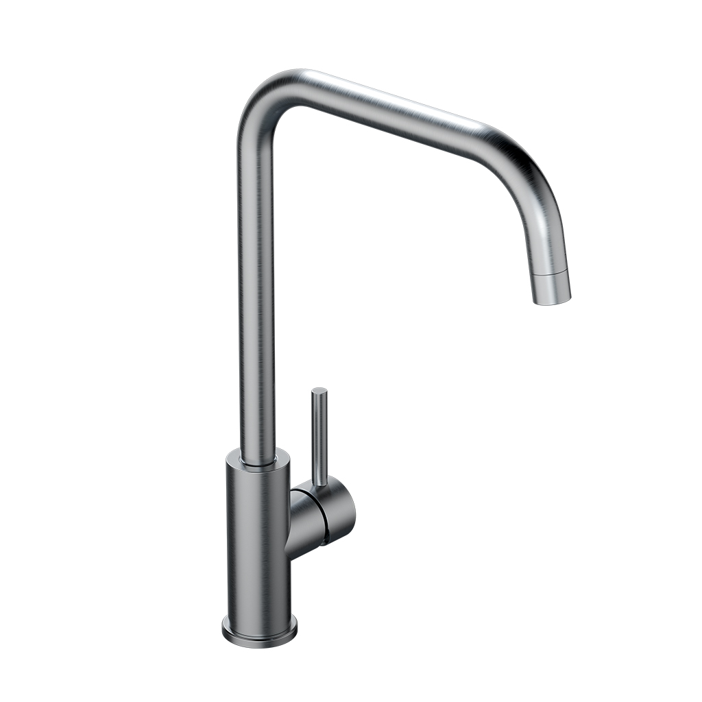 Juego monocomando para mesada de cocina, con pico móvil.