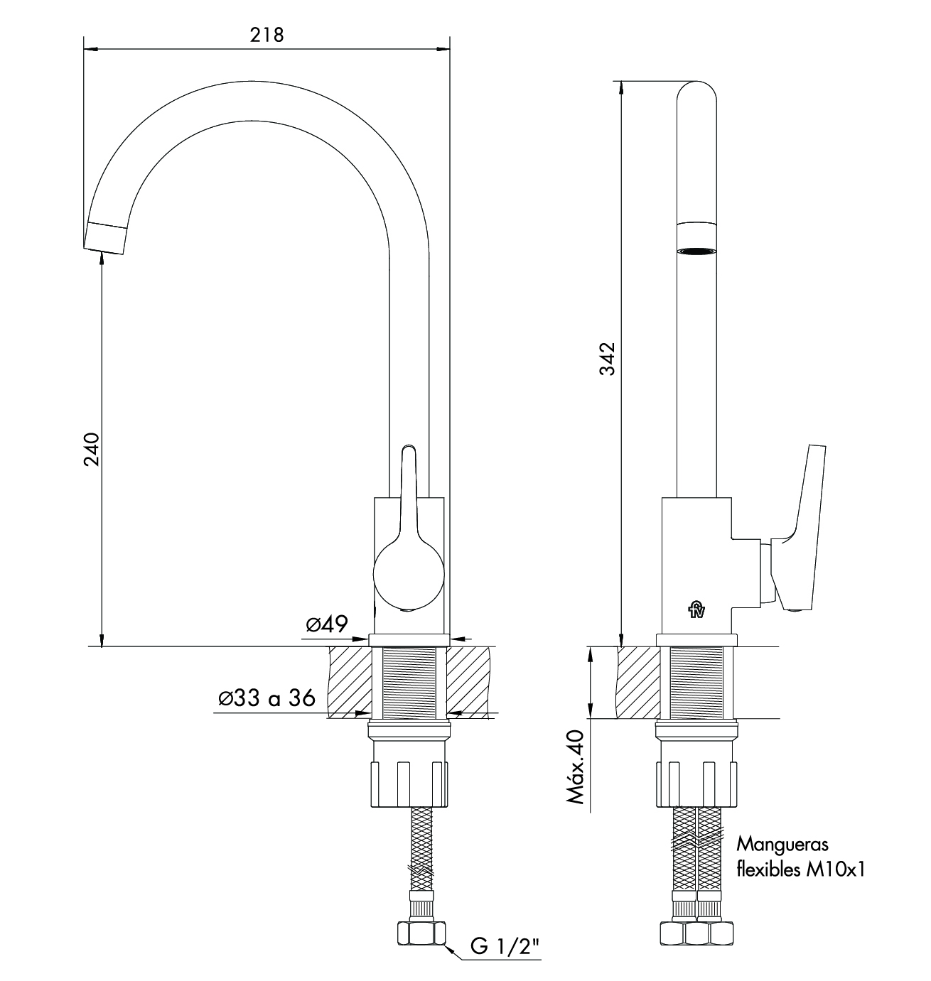 Juego monocomando para mesada de cocina.