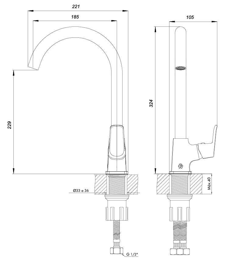 0411.04/R2 Inicia – Juego monocomando para mesada cocina